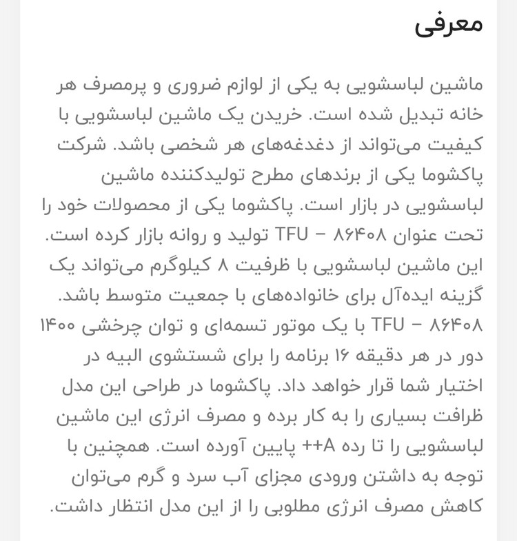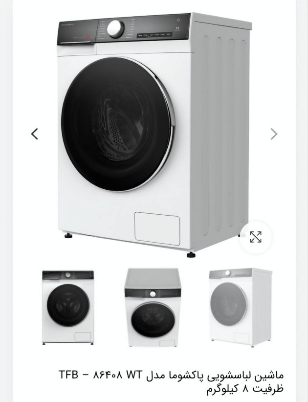 ماشین لباسشویی پاکشوما 8 کیلویی مدل TFB-86408 ST یکی از محصولات جدید شرکت ایرانی پاکشوما می باشد. شرکت پاکشوما تجربه طولانی در ساخت لوازم خانگی از جمله ماشین لباسشویی را دارد. این لباسشویی از نوع مخزن درب از جلو می باشد، ظرفیت دیگ آن 8 کیلوگرم بوده و