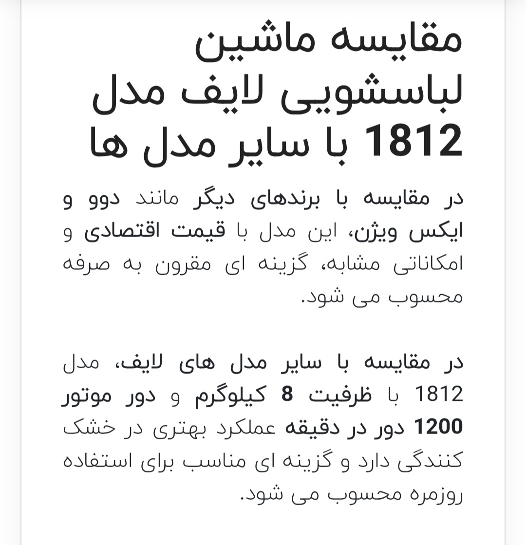 ماشین لباسشویی 8 کیلویی لایف مدل 1812 یکی از گزینه های مناسب برای خانواده های متوسط و پرجمعیت است که به شستشوی کارآمد، مصرف انرژی پایین و امکانات پیشرفته اهمیت می دهند. این مدل با طراحی مدرن و امکانات متنوع، تجربه ای راحت و موثر از شستشو را برای کاربران فراهم می کند.